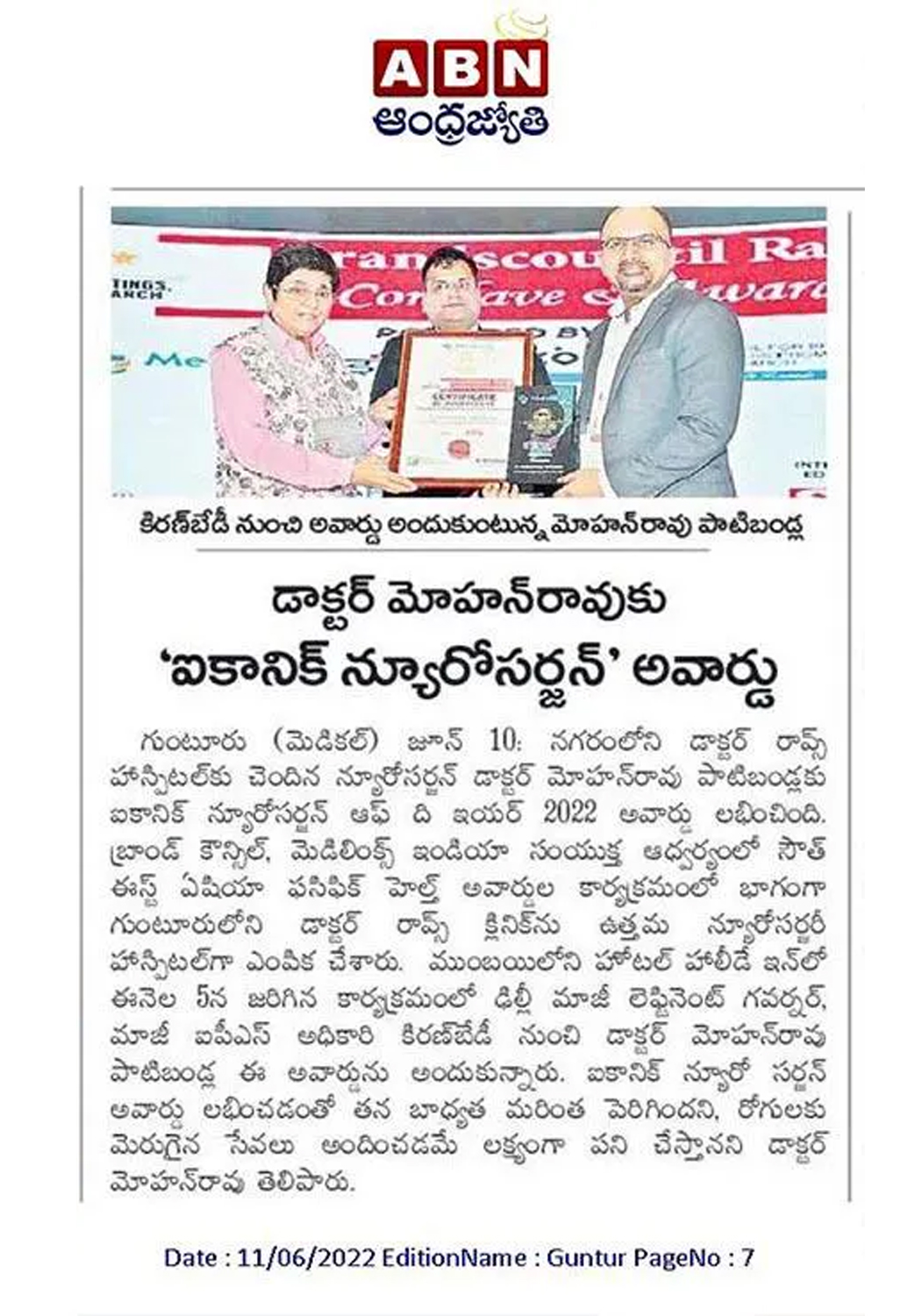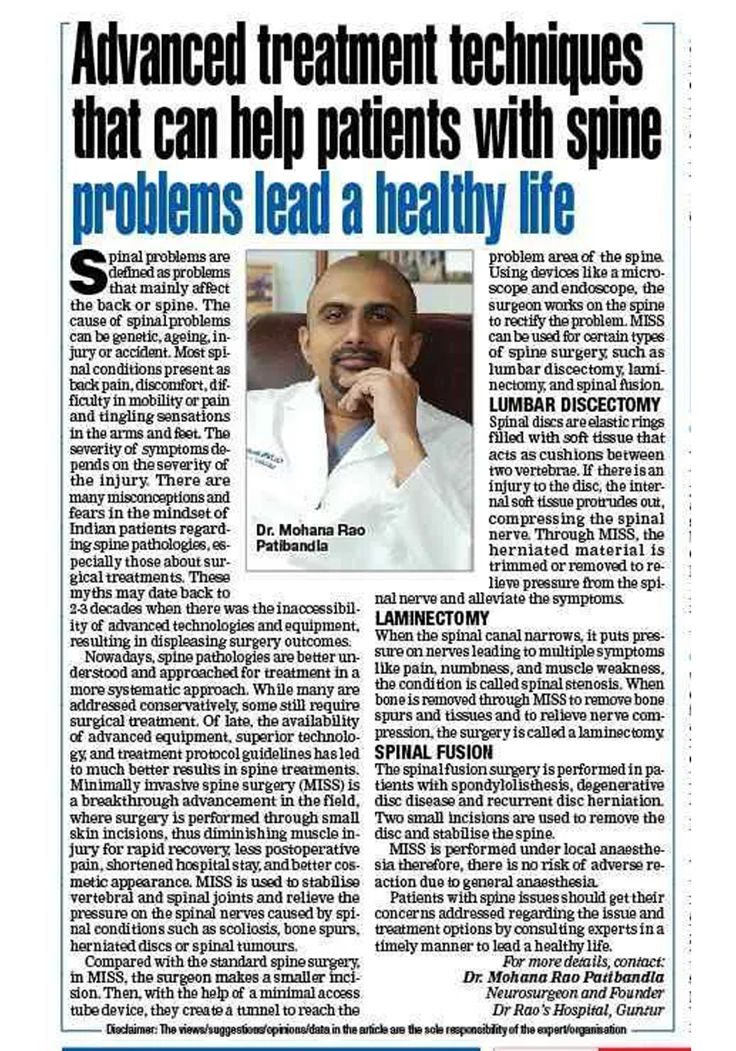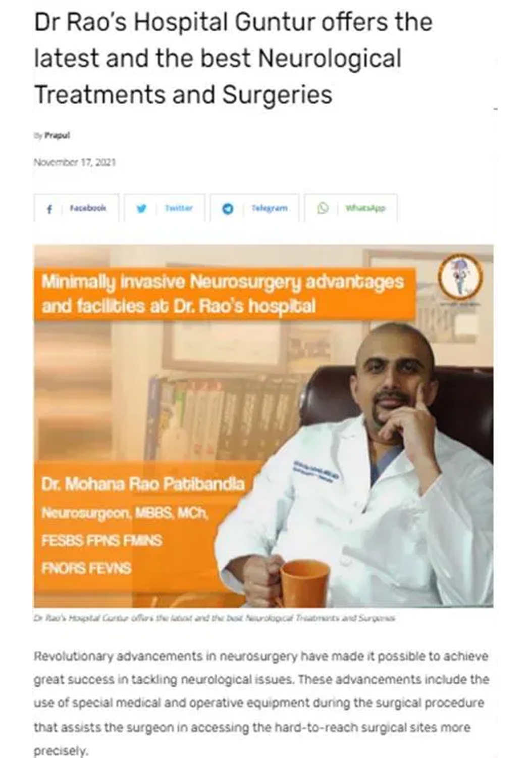 Neurosurgery, Spine Surgery, and Interventional Neuroradiology Services in Guntur, Andhra Pradesh, India.