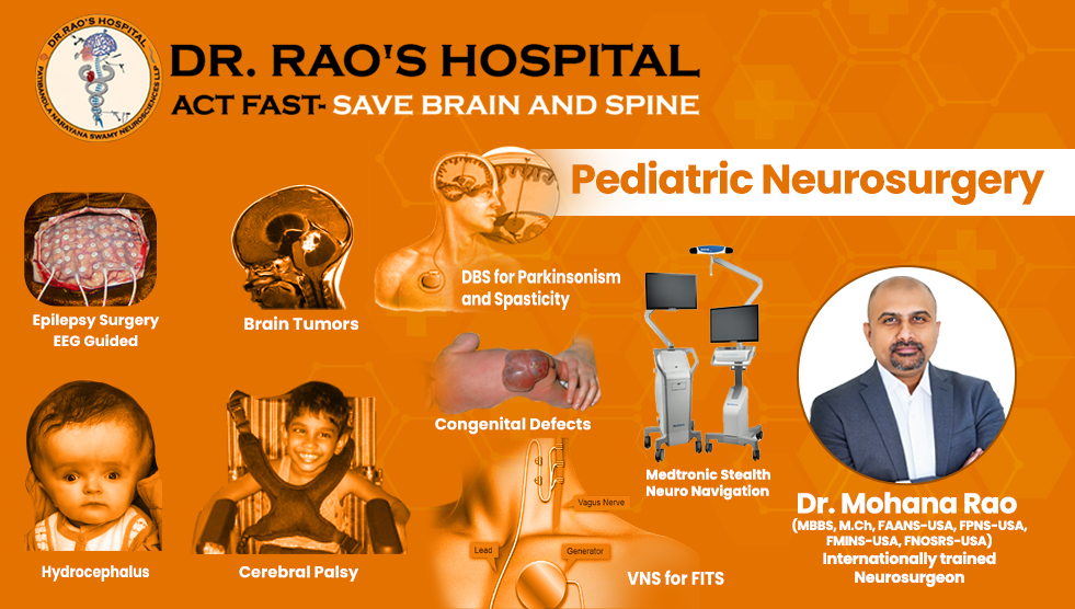 Children with neurological conditions require delicate and highly specialized care. At Dr. Rao’s Hospitals, our pediatric neurosurgery team treats a range of conditions including congenital brain and spine defects, hydrocephalus, pediatric brain tumors, and epilepsy. Our child-friendly approach, combined with minimally invasive techniques, ensures a safer and smoother recovery. We work closely with pediatric specialists, offering personalized treatment plans that address the unique challenges of neurological disorders in young patients. With advanced diagnostic tools and compassionate care, we strive to provide the best possible outcomes for children facing complex neurosurgical conditions.